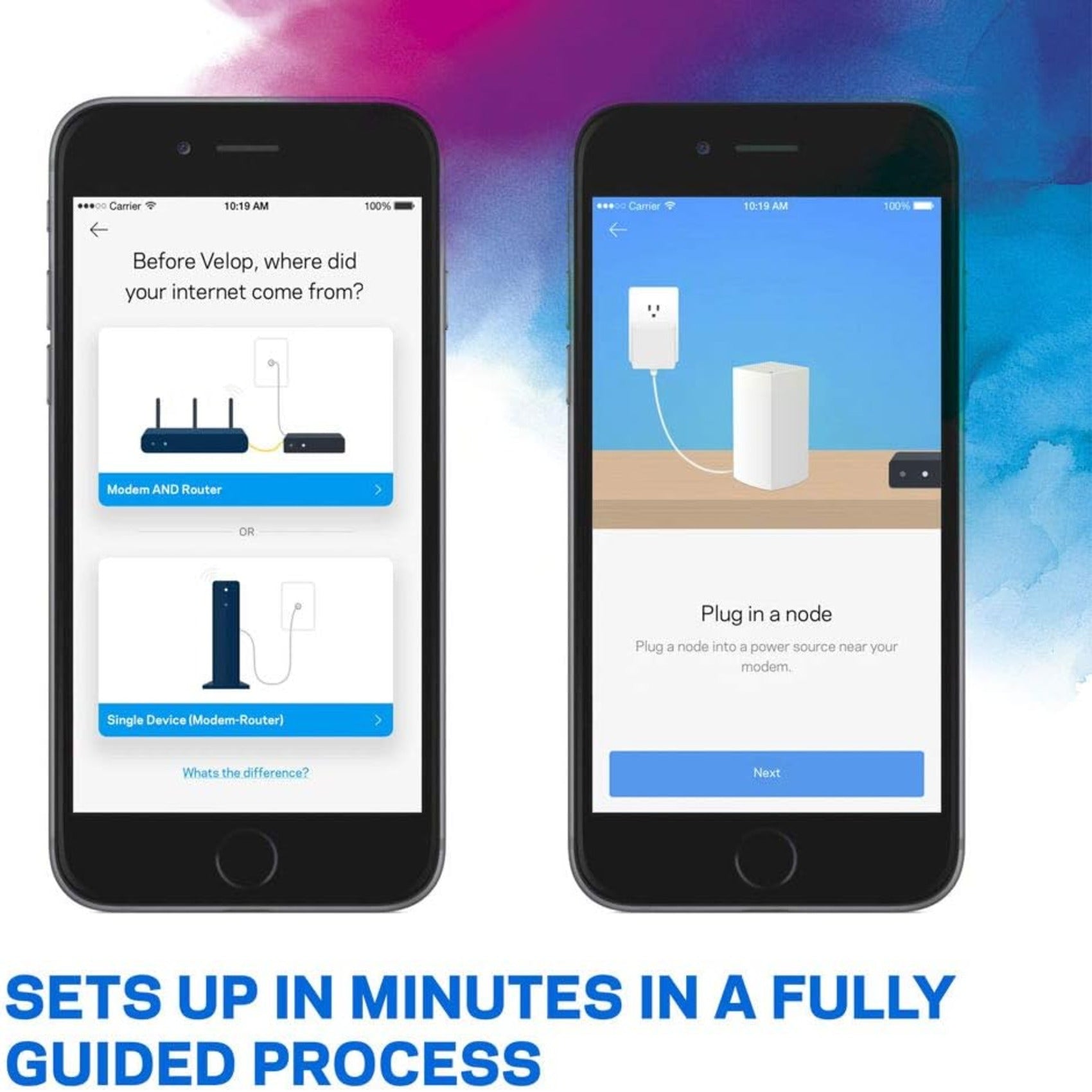 Velop con tecnología Intelligent Mesh es un galardonado sistema Wi-Fi de malla familiar creado para trabajar juntos sin problemas. Mezcla y combina nodos con diferentes velocidades para modificar el rendimiento o intercambiar colores para coordinar con el estilo de tu hogar. Independientemente de la forma, el tamaño o donde quiera que venga su internet, Velop se puede personalizar para su hogar. Lo que hace que sea fácil agregar más nodos a medida que su hogar y familia se expanden. A diferencia de los enrutadores tradicionales con extensores de alcance, cada nodo proporciona una potente señal Wi-Fi en toda su casa. Continuamente se organiza y optimiza para encontrar el camino más rápido a Internet para un Wi-Fi sin problemas en todas partes, lo que lo convierte en la forma más inteligente de Wi-Fi. Los nodos individuales pueden conectarse de forma inalámbrica o mediante Ethernet para la conexión más rápida y confiable. Este es un sistema ultra simple y potente que utiliza solo un nombre de red Wi-Fi y contraseña para brindarle Wi-Fi sin problemas y seguro. Y la seguridad de vanguardia le permite bloquear el contenido y pausar fácilmente Internet para la cena o la tarea. Funciona con todos los equipos y velocidades suministrados por los proveedores de servicios de Internet, y su sencilla configuración basada en aplicaciones lo pondrá en funcionamiento en minutos. Configuración sencilla y segura basada en aplicaciones, necesaria para configurar (1) conexión a Internet con módem. (2) Dispositivo móvil con Android 4.4 o iOS 9 y superior, Bluetooth preferido.